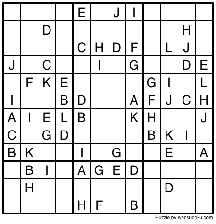 Instructions: Solve the 12x12 Sudoku so the letters A to L appear once in each row, column and 4x3 box.