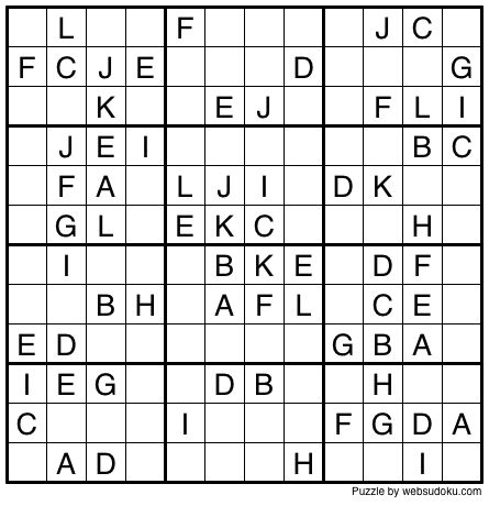 Instructions: Solve the 12x12 Sudoku so the letters A to L appear once in each row, column and 4x3 box.